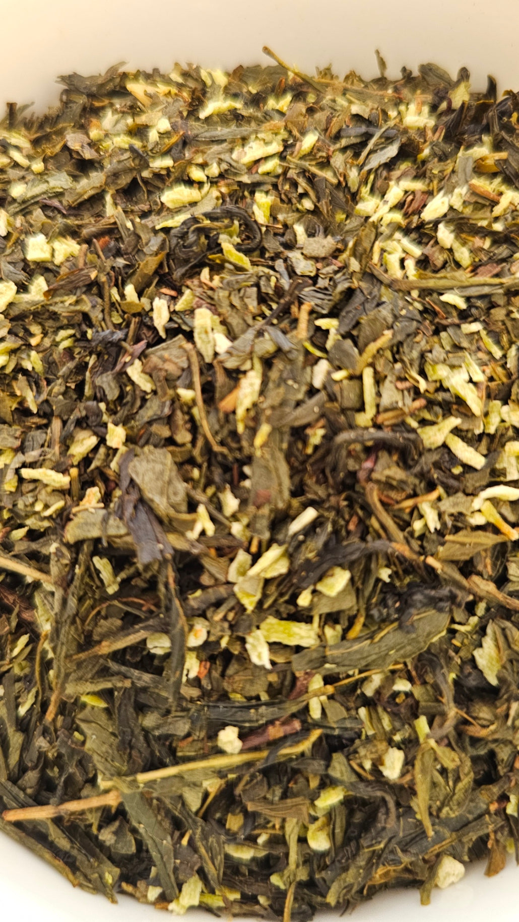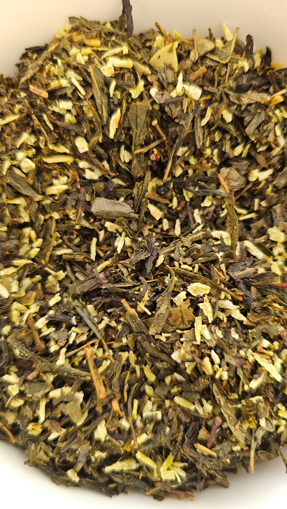Grüner Tee China Sencha, Kokosraspeln, Aroma, Mandelflakes